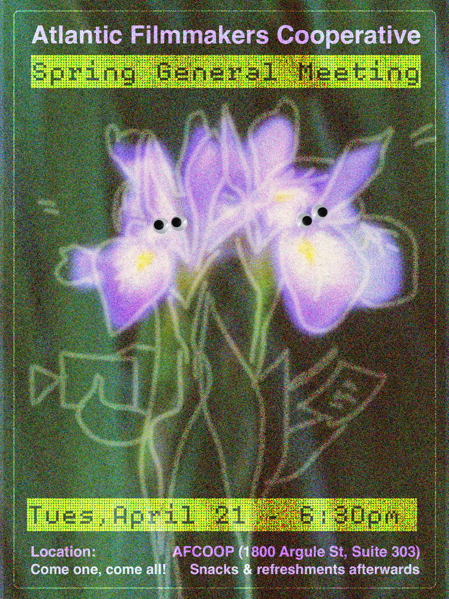 Happy Friday everyone ✨ AFCOOP’s offices are closed today, Friday, April 3rd. We hope you all get to enjoy a long weekend. The first FILM 5 of the season shot last weekend! See some pictures below 👚🎬 Reminder that Telefilm Talent to Watch nomination applications are due this Monday. Best of luck to those applying! | Our Spring General Meeting will be on Tuesday, April 21st at 6:30 pm! Come by and bring a friend. 📆 🌷 Continue reading to learn more about upcoming shows, deadlines, and discoveries! |